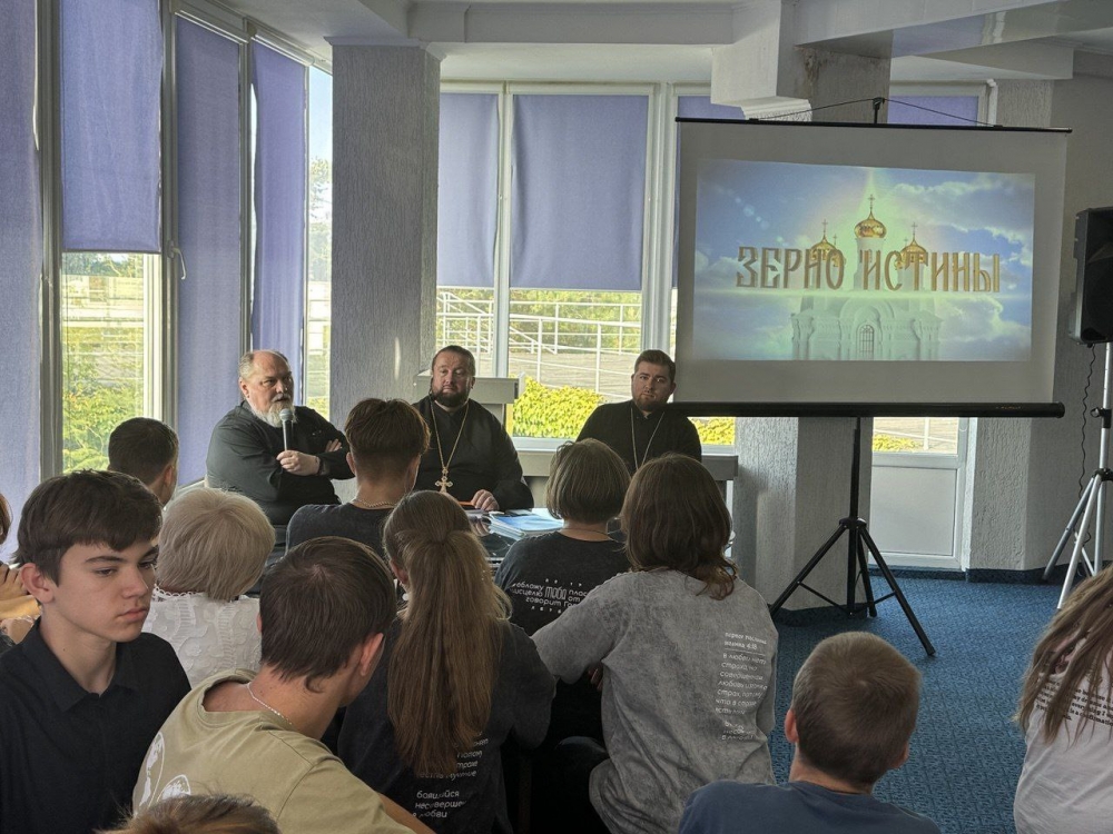 По благословению Митрополита Симферопольского и Крымского Тихона и согласно приказу министра образования РК В.В.Лаврик в епархиальном детском оздоровительном лагере "Корсунь" начались тренинги для школьников - новых членов телеклуба "Зерно Истины".